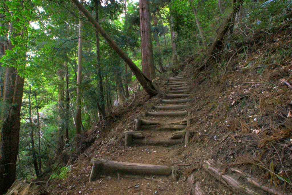 登山道は遊歩道が整備され比較的歩きやすくなっています。しかし、滑りやすい岩場やぬかるみ、アップダウンもあるため、トレッキングシューズがベストです。また、少し滑りますが履きなれた運動靴でも可能です。