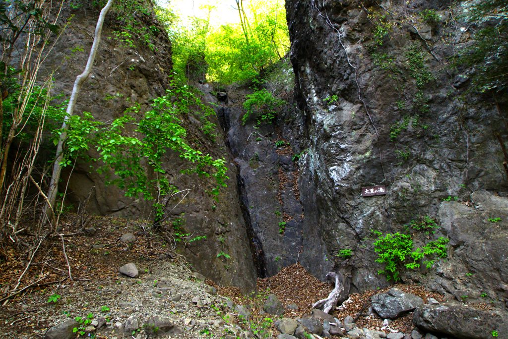さらに進むこと約25分、大黒の滝に差し掛かります。滝といっても涸沢のような滝ですが、耳をすませるとチョロチョロと涼しげな水音が聞こえてきます。