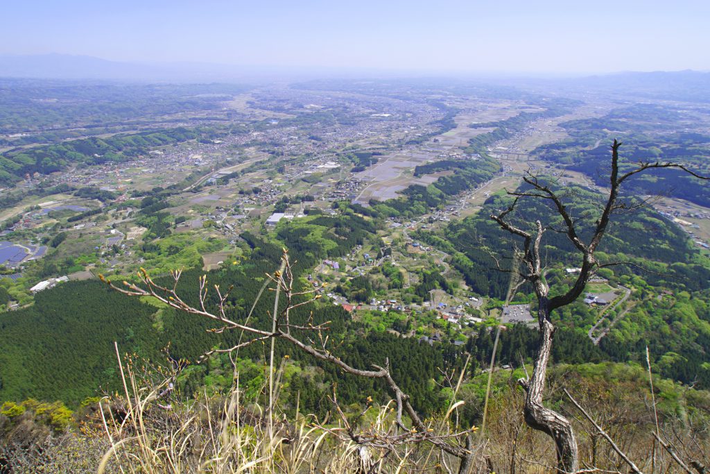 さらにいくつかの鎖場を経て、「見晴」展望台に到着。この地点で標高およそ1,000m。よりいっそう視野が広がり、壮大なスケールの関東平野が一望できます。