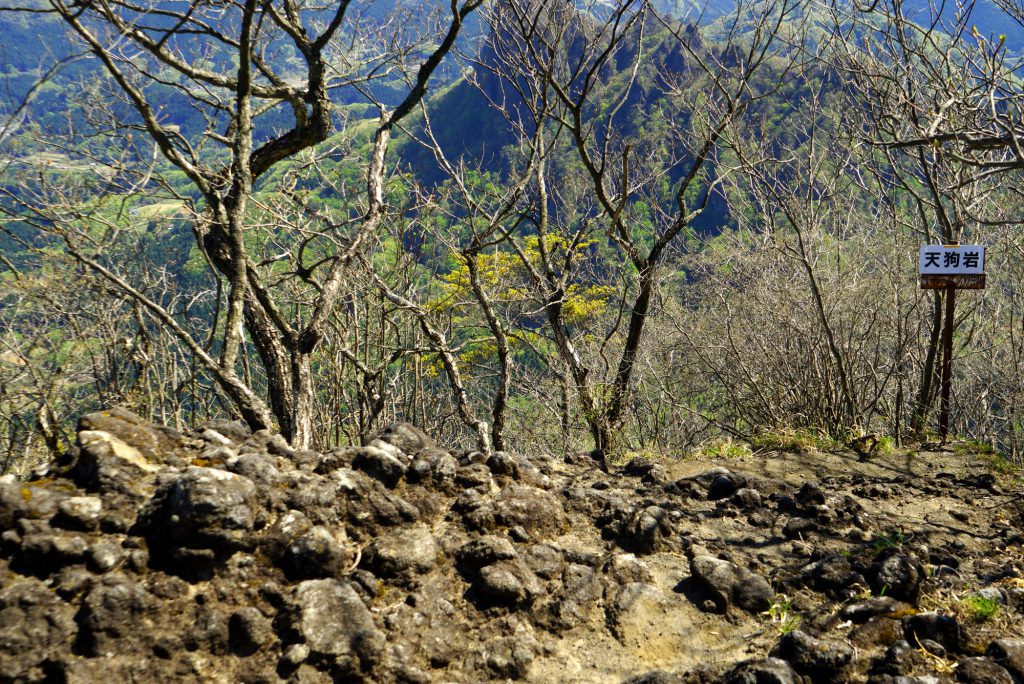 大のぞきから先はそれほどの難所はありません。やがて目的地の天狗岳(天狗岩)に到着(標高約1,084m) 。あいにく、天狗岳からの眺望はあまりよくありません。