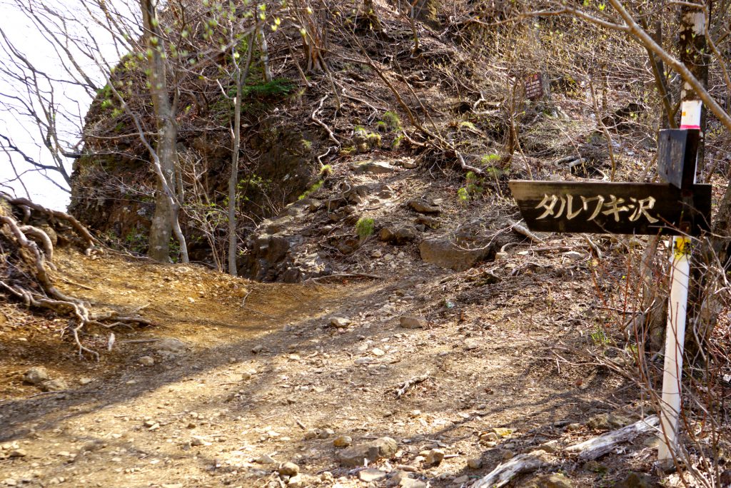顔面岩を過ぎれば、あとは中間道へつながるタルワキ沢から下山です。時間と体力があり余っている人はこの分岐から相馬岳に立ち寄ることも可能です(往復30分程度)。