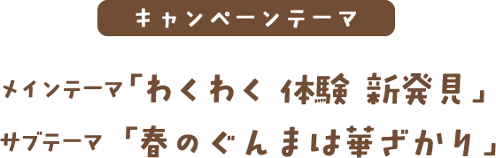 『心にググっとぐんま わくわく 体験 新発見』をテーマに、全国に誇る温泉や自然、歴史・文化遺産、グルメなど群馬の魅力を発信します。