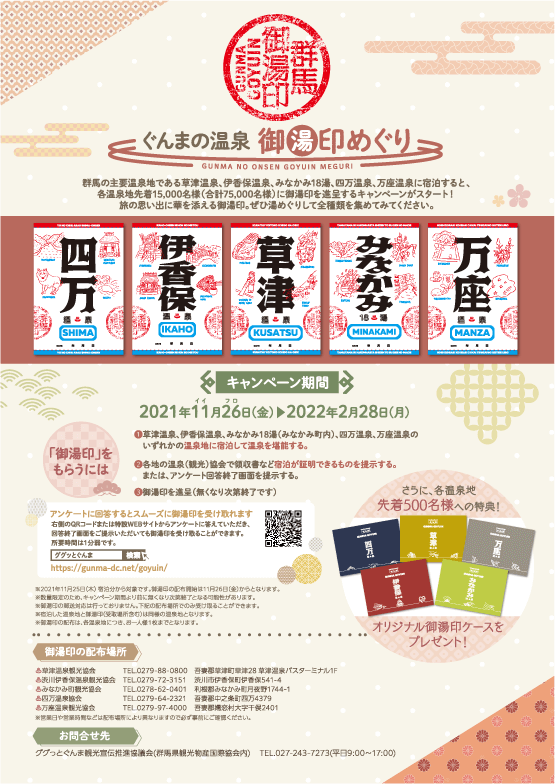 群馬ã®ä¸»è¦æ¸©æ³å°ã§ããèæ´¥æ¸©æ³ãä¼é¦ä¿æ¸©æ³ãã¿ãªãã¿18湯ï¼ã¿ãªãã¿çºå