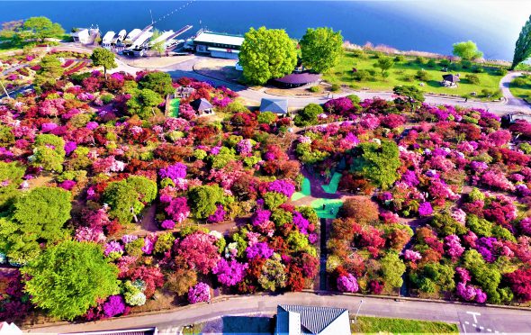 公園内には、ヤマツツジ、キリシマツツジ、リュウキュウツツジなど100余品種約1万株のつつじが咲き誇る日本有数のつつじ公園です。